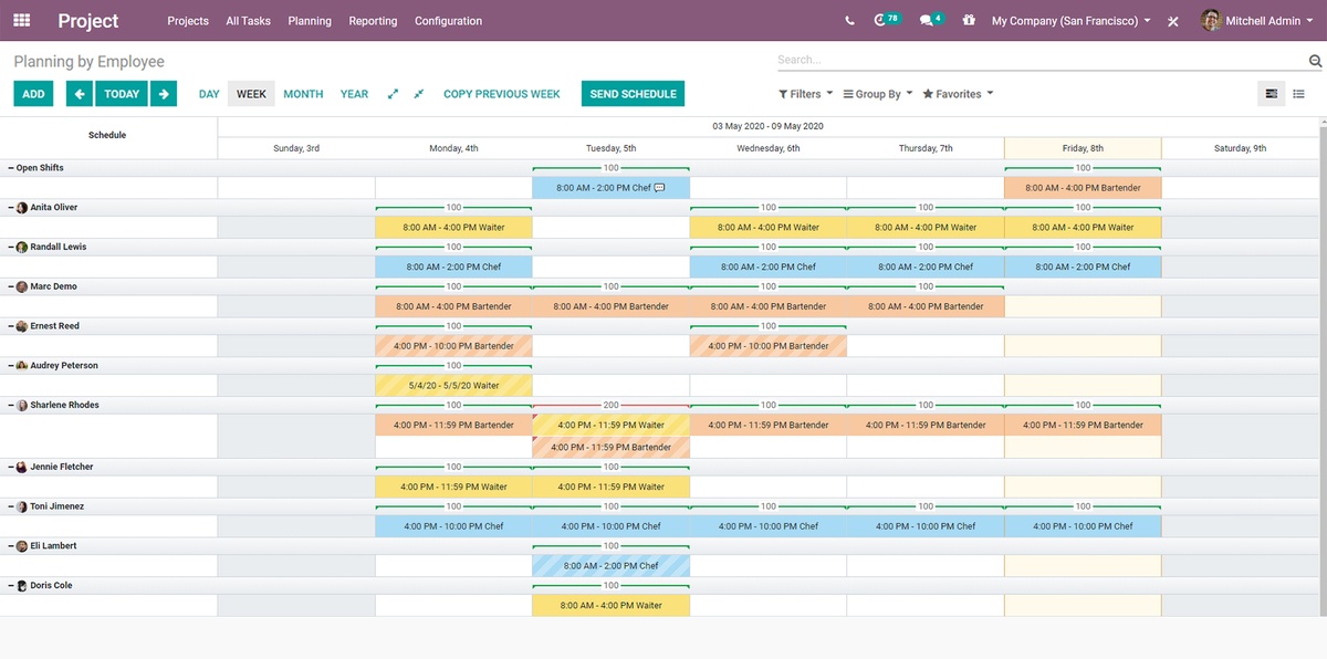 Puedes programar tus equipos en diferentes proyectos, teniendo en cuenta asistencia y tiempo libre.