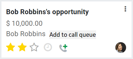 Con un clic desde la vista de kanban del flujo de CRM puedes programar una llamada para ti o alguien más. Solo desliza el ratón sobre la tarjeta de tu contacto y haz clic para agregarlo a tu lista de próximas actividades.