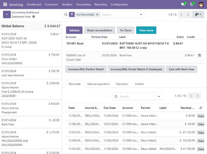 Automatiza la sincronización de tus extractos bancarios directamente con tu banco o mediante la importación de archivos. Simplifica la conciliación bancaria, permitiendo una coincidencia rápida y precisa entre tus transacciones y los movimientos bancarios para un control financiero más efectivo.